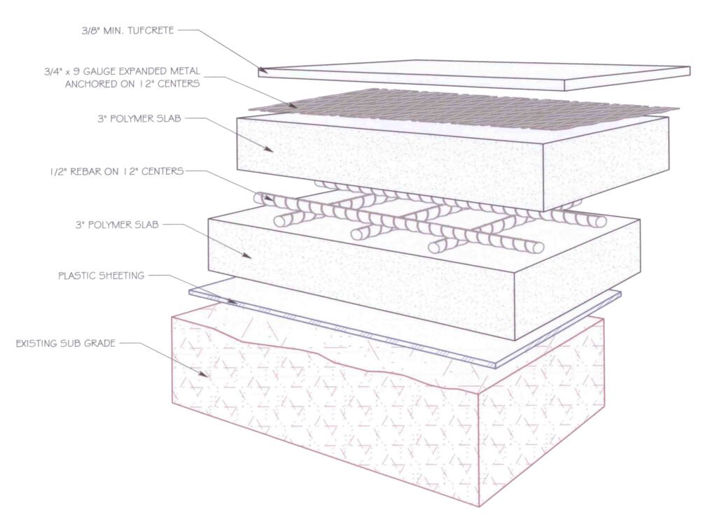 In areas where the concrete slab itself is failing due to temperature shock, extremely heavy-duty traffic, or other special conditions, Tufco can demolish the existing slab and replace it with our Polymer Slab. Made entirely of our Tufcrete Urethane, and installed with rebar and expanded metal, this system is designed for blast freezers and waste management sites where all else fails.